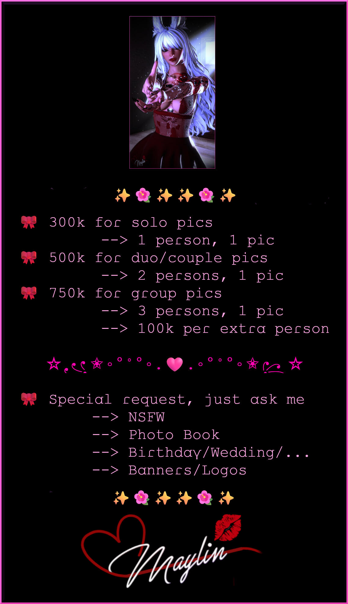 I worked for a little less than a year in a club on Light as a photographer then as a dancer, still photographer in few clubs on Chaos.Passionate photographer, I also try my hand at tattooing (and makeup a bit)Maylin is a shy Lil' Bunny with empathy and loyalty (my mottos), ready to meet new people and have good times with friends so don't hesitate to come tchat and leave with a nice pic :)